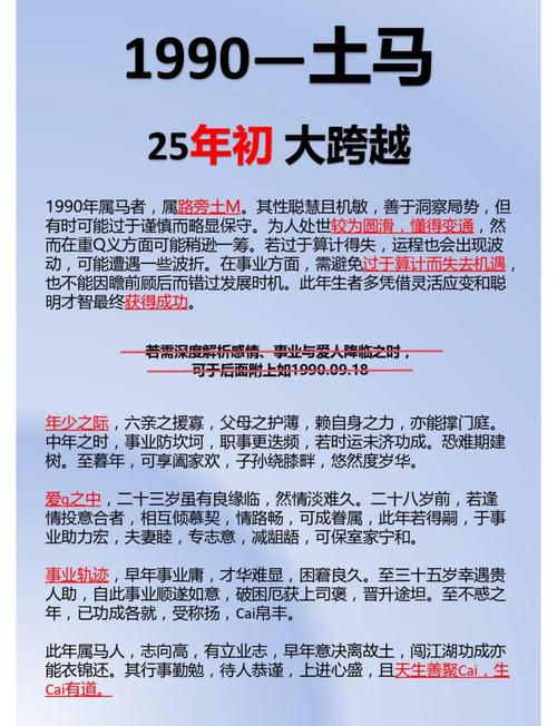 1990年出生的属马人在2023年,事业运势总体平稳。受到“天乙贵人”的助力,工作中容易得到贵人相助,遇到难题时能得到指点和支持。不过,也要注意避免急躁冲动,保持沉着冷静的心态,才能抓住机遇取得成功。