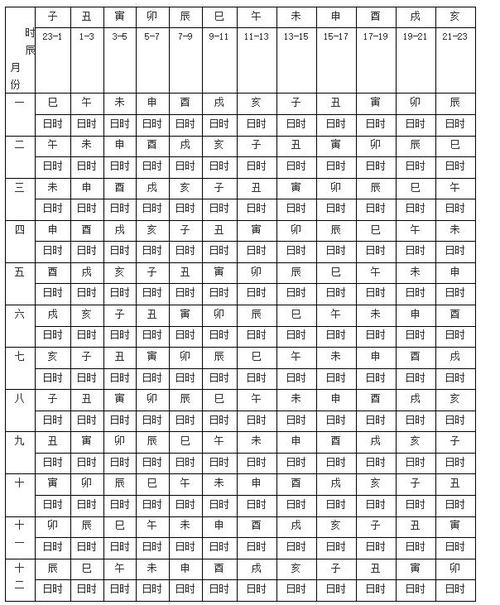 时辰吉凶一览表