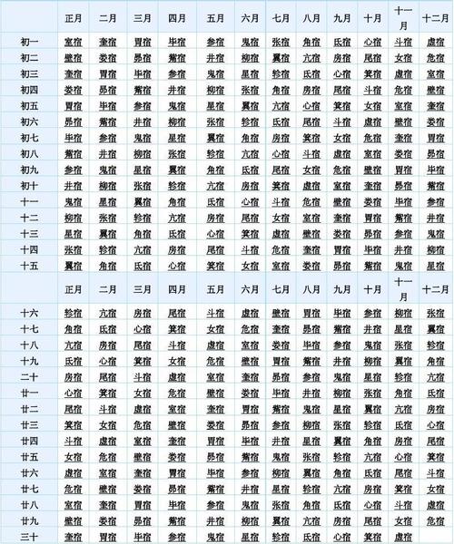 二十八星宿东方青龙?角宿?亢宿?氐宿?房宿?心宿?尾宿?箕宿?角木蛟?亢金龙?氐土貉?房日兔?心月狐?尾火虎?箕水豹北方玄武?斗宿?牛宿?女宿?虚宿?危宿?室宿?壁宿?斗木獬?牛金牛?女土蝠?虚日鼠?危月燕?室火猪?壁水貐西方白虎?奎宿?娄宿?胃宿?昴宿?毕宿?觜宿?参宿?奎木狼?娄金狗?胃土雉?昴日鸡?毕月乌?觜火猴?参水猿南方朱雀?井宿?鬼宿?柳宿?星宿?张宿?翼宿?轸宿?井木犴?鬼金羊?柳土獐?星日马?张月鹿?翼火蛇?轸水蚓