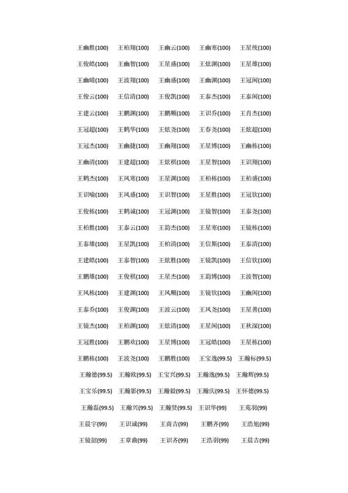 王盛霆、王宪宏、王广文、王堡中、王士裕、王锡栋、王喜深、王济嵘、王稼鹏、王远洪、王数深、王锡稳、王海奉、王先栋、王洪深、王鹤峻、王纯宽、王声万、王启益、王业绍、王忠程、王新蛟、王麟康、王基宸、王自川、王裕卫、王文经、王甫权、王积海、王宇枢、王吉川、王跃炜、王士纪、王泳泰、王仲政、王基舟、王朗坤、王扬来、王绍升、王庄亮、王信钏、王威啸、王高远、王尚熙、王竞泉、王增智、王声鹏、王盟光、王晋进、王儒胜