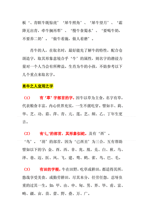 在汉字中,有一些字非常适合属牛人使用,这些字在形式上和含义上都是很好的选择。