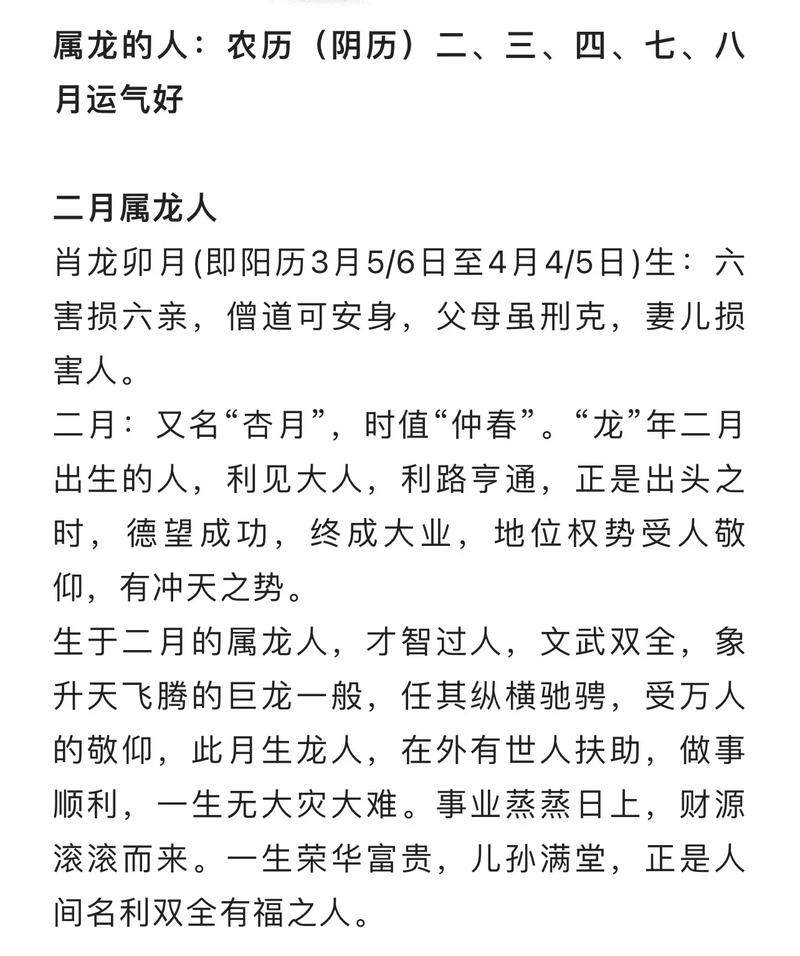 出生月份并不是决定命运的唯一因素,还要结合每个人不同的生辰八字和运势来综合判断。但以上几个月份出生的属龙人,的确拥有着先天的优势,更容易在人生的道路上取得成功。