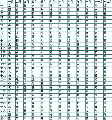 十二星宿是黄道带上的十二个星宿,也被称为二十八宿的子集,在天文学上用于表示月亮在黄道上的位置。十二星宿按照出现顺序分别为:角、亢、氐、房、心、尾、箕、斗、牛、女、虚、危。不同的星宿具有不同的吉凶寓意。