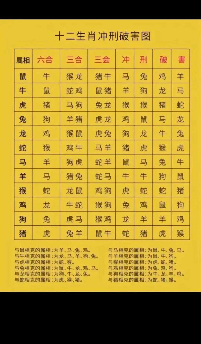 生肖相克的说法可能会对人们的婚恋、交友、事业等方面造成负面影响。比如,有些人可能会因为生肖相克而拒绝与某人交往,或者认为某人生肖与自己相克而不敢与其合作。这些都是生肖相克的危害。