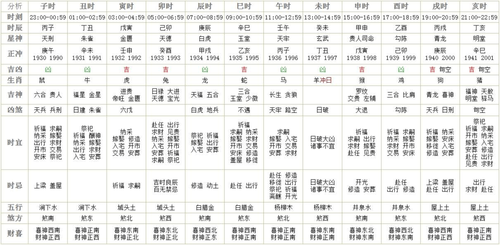 禁忌:动土、签合同、手术、婚礼、搬家。