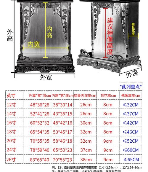 桌子的宽度应与神龛的大小相协调。通常是 3.2寸(约96.9厘米)或 4尺(约121.9厘米)。太窄会显得寒酸,太宽会有喧宾夺主的嫌疑。
