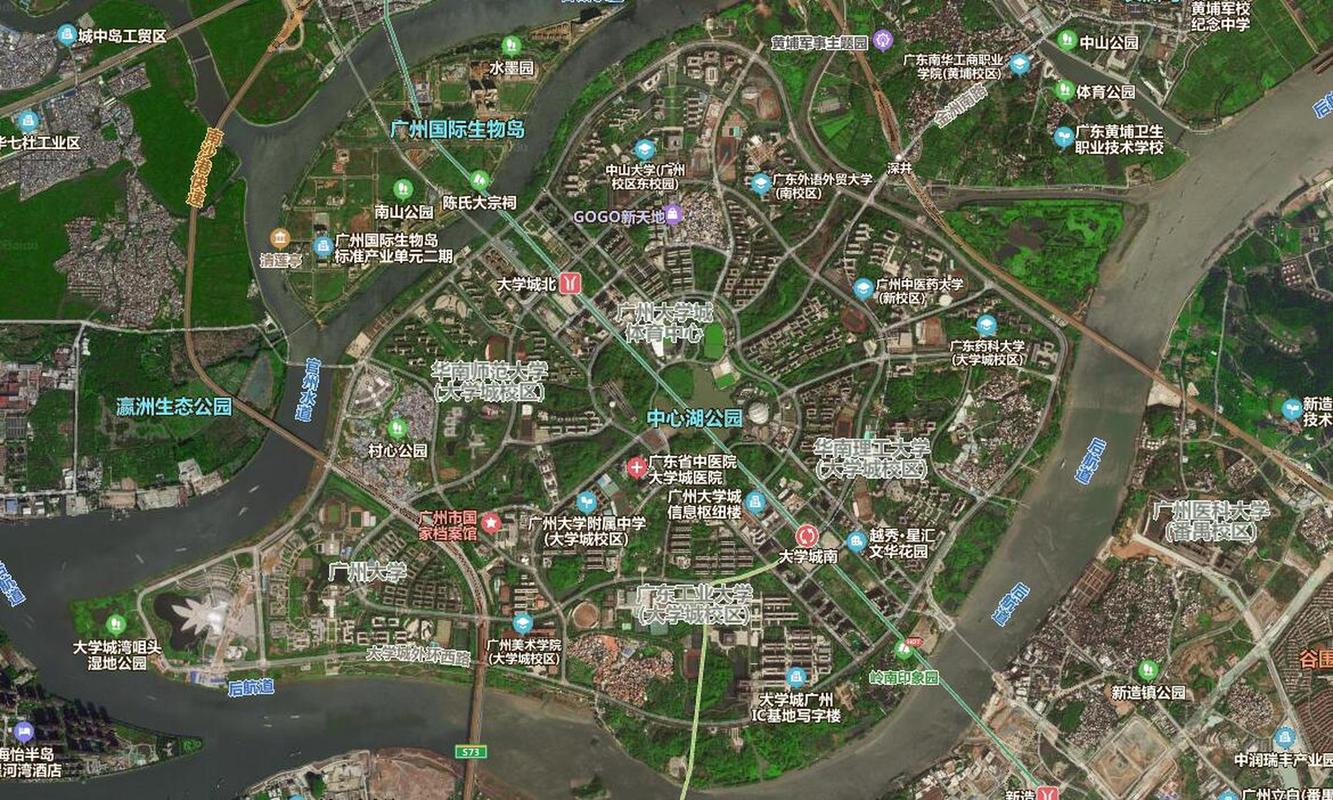 大学城依傍莲花山,面向珠江,形成了依山傍水的格局。莲花山是广州南部的名山,有"羊城第一秀"之称,其山势雄伟,自古以来便是风水宝地。而珠江是广州的母亲河,水流湍急,源远流长,是生气聚集之地。大学城背靠莲花山,面向珠江,吸纳山川灵秀之气,气运昌隆。