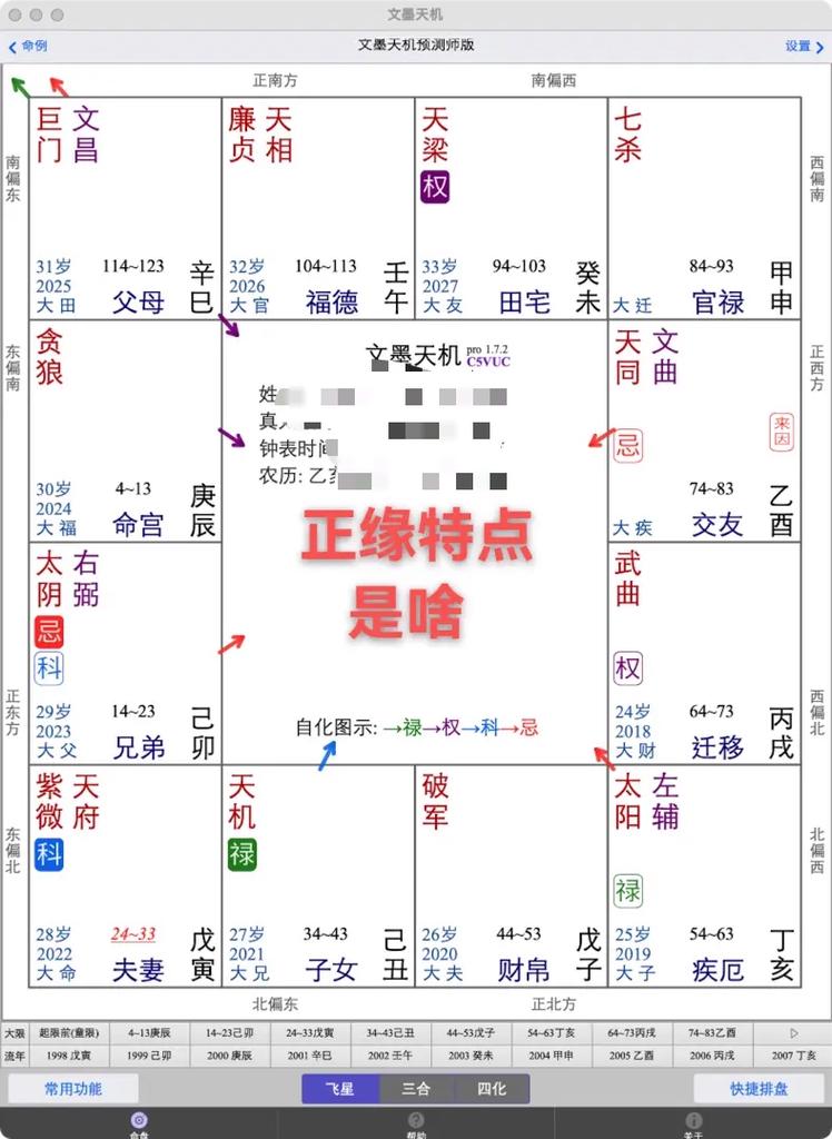 3. 四化分析:四化是指化禄、化权、化科、化忌,它们代表着不同的能量变化和运势影响。通过分析四化的分布和变化,可以了解一个人在不同阶段的性格表现和潜在优势的发展。