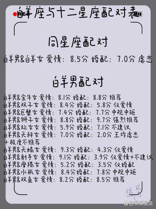 白羊座男性在星座配对中通常与其他火象星座(如狮子座和射手座)以及某些风象星座(如双子座和水瓶座)较为匹配。以下是详细的配对指数和分析。