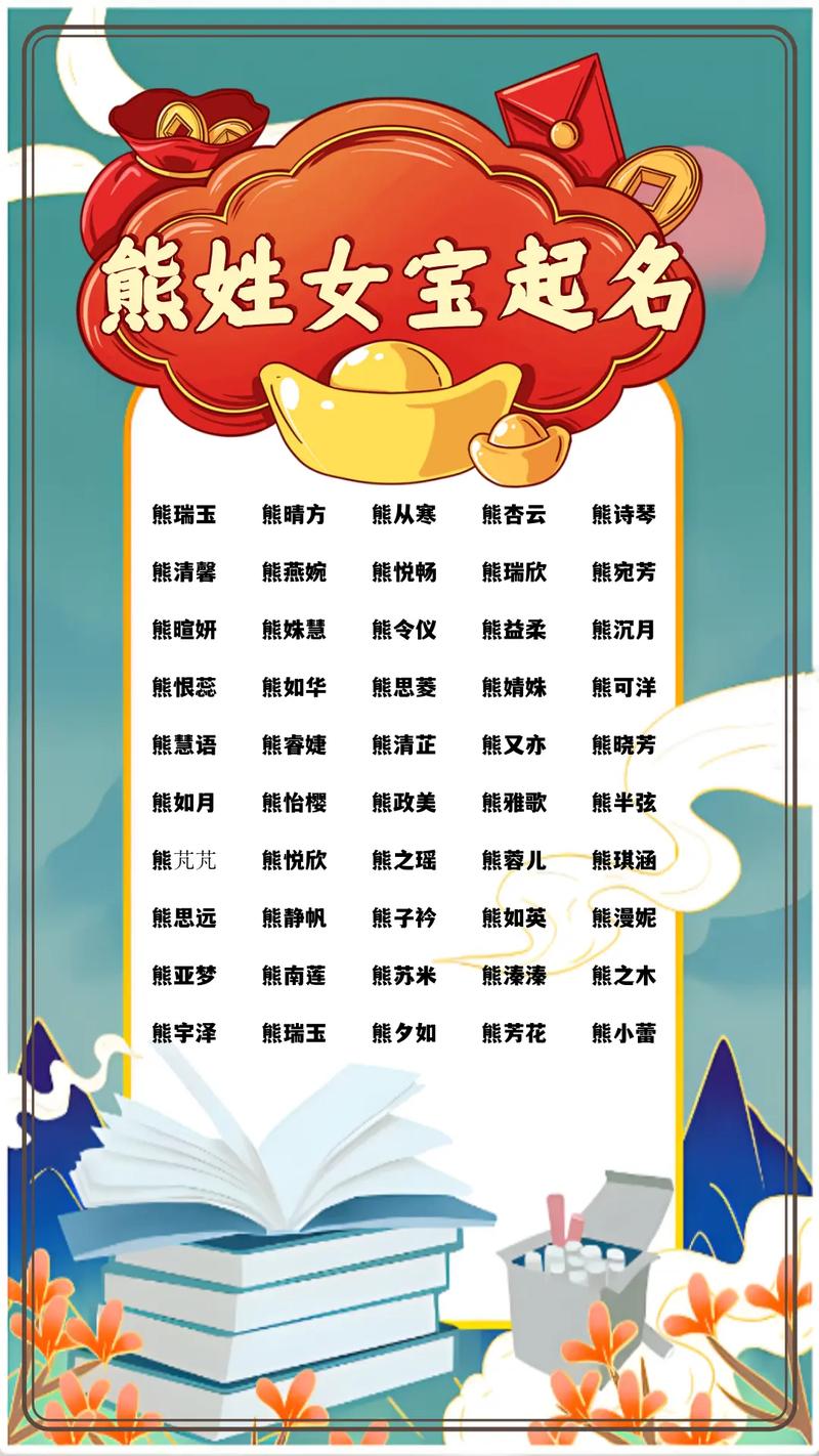 以下是一些基于以上原则精选的熊姓虎宝宝女孩名字,仅供参考: