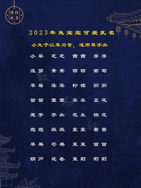 生肖兔性格温顺,聪慧伶俐,取名时可选用一些象征美好品格的字眼。例如,“芷”,香草名,比喻高洁的品德,可取名朱芷萱、朱芷若,寓意女孩冰清玉洁,蕙质兰心。也可以选择与兔子生活习性相关的字。兔子喜食草,含有“艹”字头的字,如“芊”、“蓉”、“菁”等,也颇为适宜。
