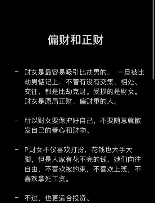 在命理学中,八字偏财代表个人在财富方面的运势。偏财的特质通常与财富增长、机会把握和风险投资密切相关。对于女性而言,偏财八字的影响尤为显着,但在实际生活中,她们可能会遭遇一些特定的人或情况,导致财富运势受到阻碍。本文将深入探讨八字偏财女性最怕什么样的人,并提供有效的应对策略。