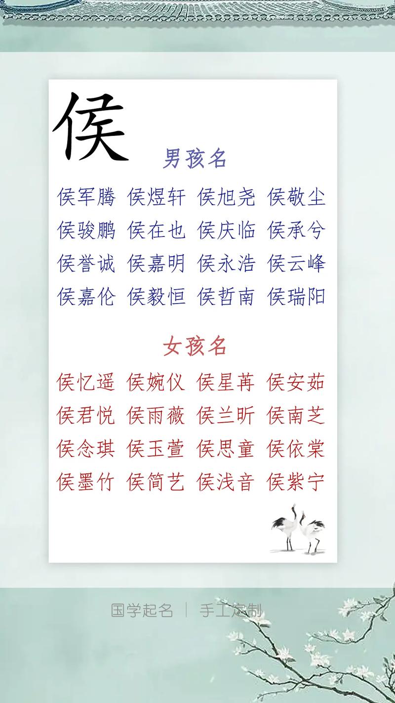 以下是一些适合侯姓女婴的原则,仅供参考。不要直接应用。建议根据婴儿自身情况进行选择: