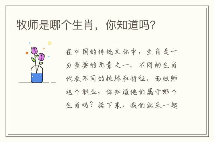 在中国的传统文化中,生肖不仅仅是人们用来计时的一种方式,更是承载着丰富情感与深刻寓意的符号。提到牧师,许多人可能会联想到宗教、道德与信仰。牧师究竟是什么生肖呢?这个看似简单的问题,实际上却可以引发对生肖文化与职业象征的深思。