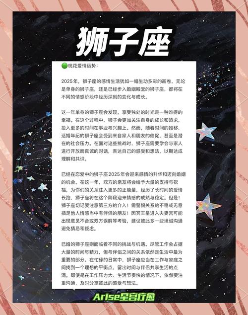 5月9日,狮子座的整体运势呈上升趋势。在贵族的帮助下,你将在事业和财富方面取得进展。但在情感方面,要谨慎处理,避免情绪波动引起不必要的纠纷。