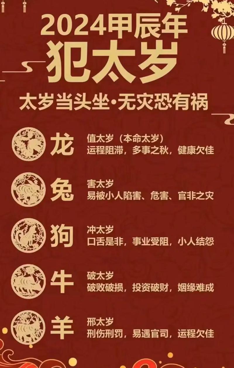太岁,为岁神之称,掌管一年之运势。属龙者乃辰龙,五行属土,与太岁之年往往相冲或相刑,故易犯太岁。