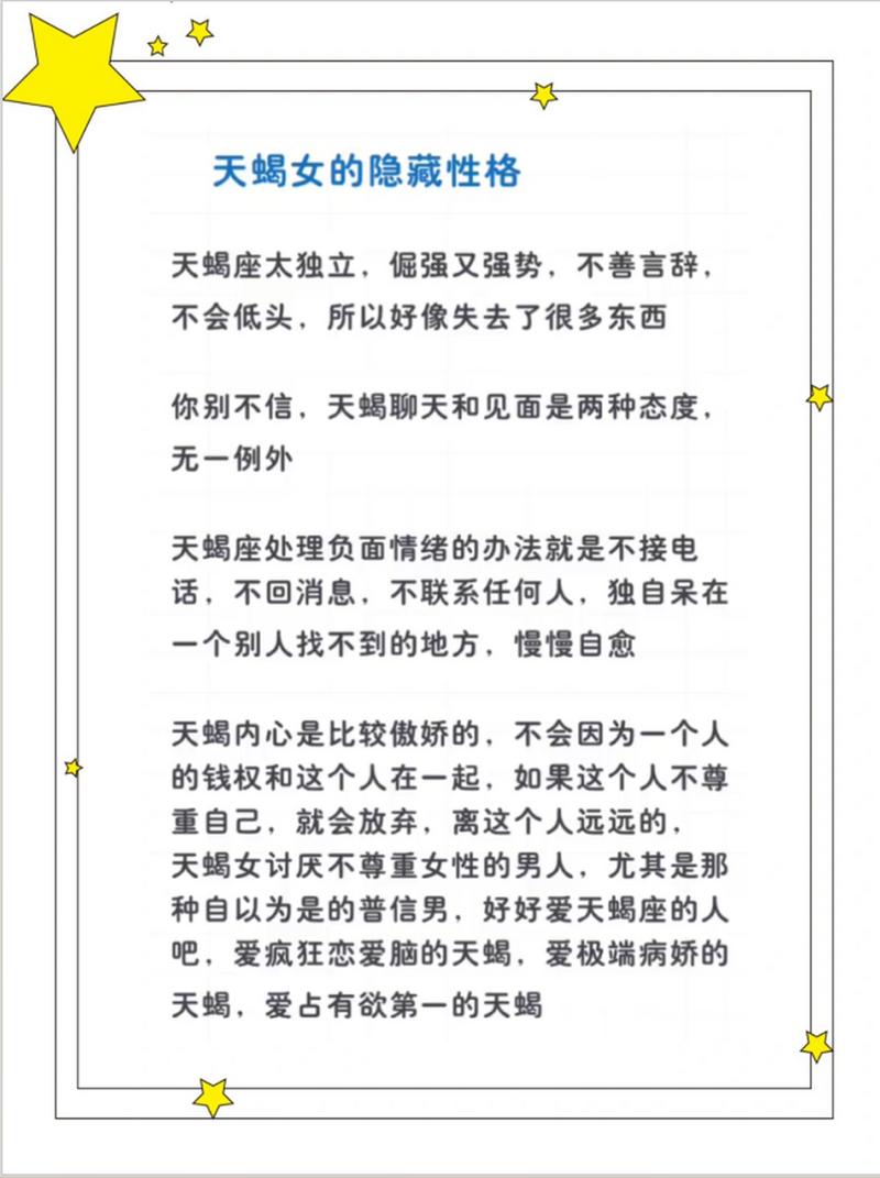 天蝎座的女人以其独特而复杂的性格特点在星座中占据了一席之地。她们的性格并非简单直白,而是充满了层次感和神秘感。天蝎座女人的性格往往令人着迷,既让人感到好奇,又让人难以捉摸。这篇文章将深入探讨天蝎座女人的性格特点,揭示她们如何在神秘与深刻中展现独特的魅力。