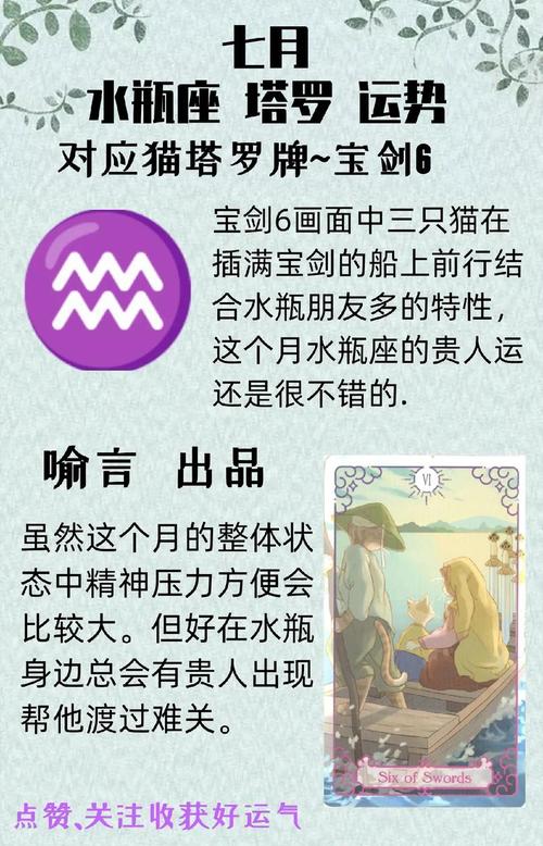 爱情方面,水瓶座在七月可能会抽到宝剑三。这张牌通常代表着心痛、失落和伤感,暗示着感情关系中可能会出现一些问题或挑战。