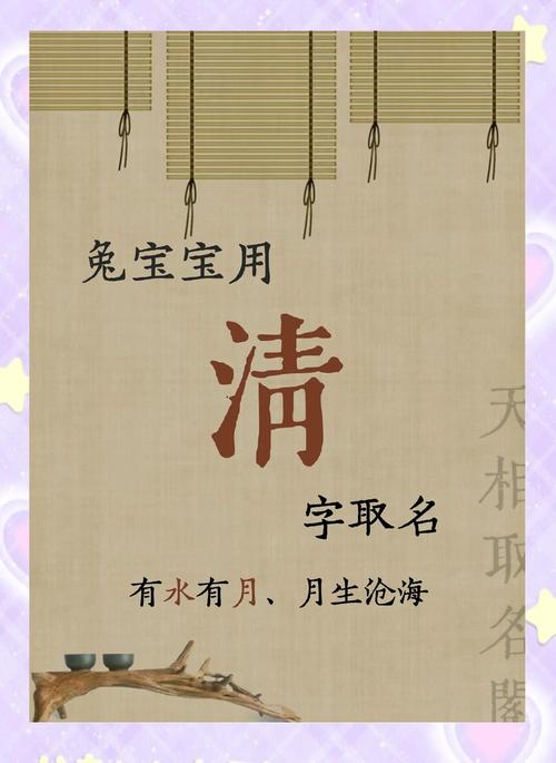 为兔宝宝取名是一项富有挑战但又充满乐趣的任务。以“清”字为主题,不仅能够赋予宝宝一个美好的寓意,还能够引导他们在未来的生活中保持心灵的纯净与乐观。通过结合音韵美、意义深远、个性化以及八字五行的考量,家长们可以为兔宝宝创造一个独特而充满希望的名字。