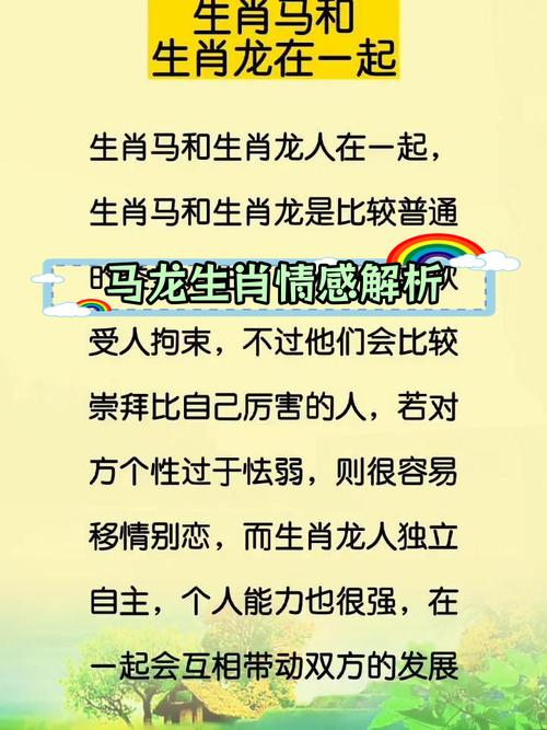 理解是基石。属龙男需要理解属马女对自由的渴望,不要试图控制她们的行为。属马女也需要理解属龙男的责任感和事业心,给予他们足够的信任和支持。