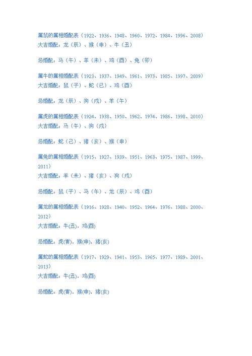 注意事项:婚配表仅供参考