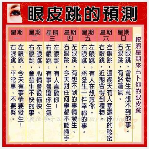 这种解读方式的核心在于,将眉毛跳动与个人的运势变化联系起来。根据传统的观念,眉毛跳动可能意味着某种信息的传递,或者是宇宙能量对个人的影响。这种传统观念虽然没有科学依据,但它反映了古代人们对身体和自然之间关系的探索和理解。