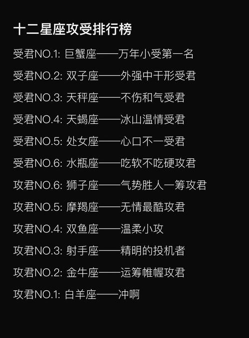 每个人都有自己喜欢的角色类型,在BL世界,攻击性角色代表“攻击性男性”和“攻击性男性”,这两种类型都有大量的粉丝。那么,谁更适合在12个星座中扮演攻击性和攻击性的角色呢?让我们逐一分析一下。