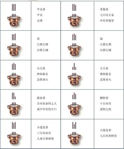 烧香解图需要品质较好的香柱、桔梗炭等烧香材料,以及一些传统的烧香用具,如香炉、香缸、火盆、香夹等。在进行这项技术时,需要选好一个较为干燥通风的地方,然后将香柱放在烟缸内点燃。之后,根据不同的预兆,烟雾的变化和香柱的状态可以分为不同的类型,从而推测出吉凶祸福的情况。
