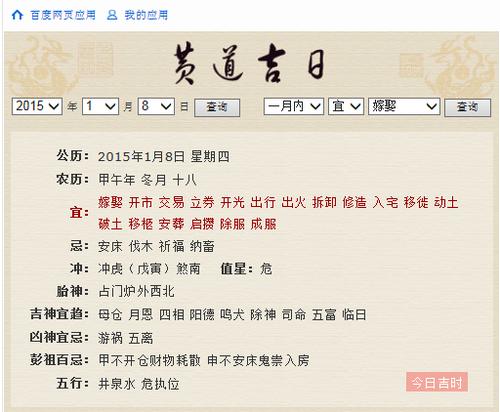 根据《建除十二神排》,这一天是“除”日,也是黄道吉日。黄道吉日不是什么都不忌讳的,而是求官、上任、开业、搬家等。这些在万年历上很容易找到。