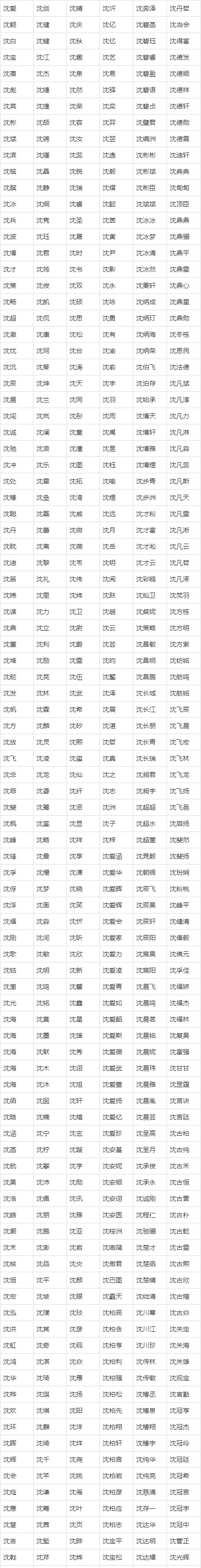 沈:适合男生取名。来自成语“一鸣惊人”中“一鸣”的谐音。