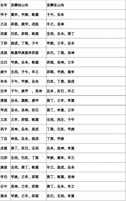 《二十四山造葬日吉凶表》的内容