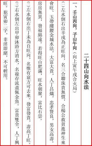 风水二十四山水法分为二十四种,包括十四种可见的山水(有生命)和十种看不见的山水(无生命)。