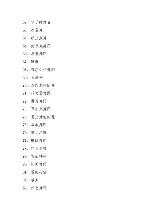 2、根据舞蹈的类型来起名舞蹈的类型有很多,比如古典舞、芭蕾舞、民族舞、民间舞、现代舞、踢踏舞、爵士舞等等,如果还要细分的话,还是有很多的,比如杨丽萍的雀之灵,就是民族舞中的孔雀舞,舞蹈名字以舞蹈类型来起名,非常贴合舞蹈本身,而且体现了高雅的艺术。
