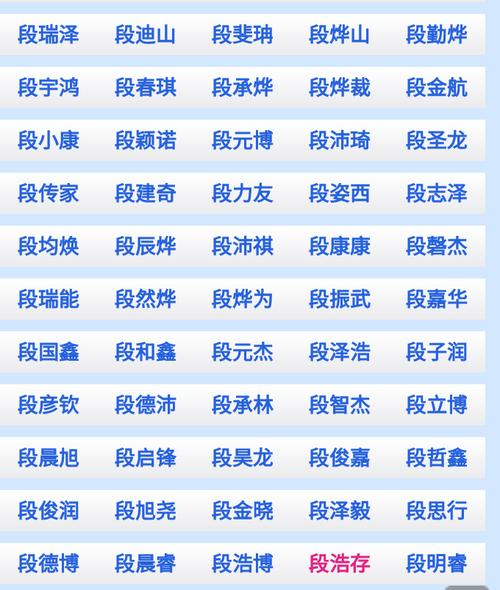 段柏仁、段风博、段春皓、段春盛、段鼎雄、段波翔、段肖博、段熙腾、段波智、段圣栋、段炫尧、段千峻、段圣耿、段靖博、段波云、段镜瑜、段冠胜、段侠文、段星尧、段识齐、段建诚、段敬翔、段施普、段熙欢、段柏瑞、段新皓、段建凯、段风栋、段炫方、段熙高、段风华、段敬轩、段熙闲、段星杰、段敬书、段鼎欢、段圣尧、段柏睿、段楷峻、段楠栋、段祺栋、段幽方、段楠雄、段冠福、段星豪、段冠华、段祺渊、段敬高、段星统、段肖仁、段圣原、段柏云、段柏盛、段敬恒、段鼎寒、段炫元、段信嘉、段祺宝、段熙捷、段楷皓、段新哲、段俊图、段识方、段柏杰、段识元、段肖瑞、段建玮、段幽智、段肖翔、段敬洋、段信睿、段幽翔、段柏玮、段熙原、段俊维、段敬城、段祺皓、段信乔、段信元、段识硕、段祺云、段裕尧、段川瀚、段炫盛、段泰皓、段冠仁、段星瑜、段信文、段星钦、段敬峰等。