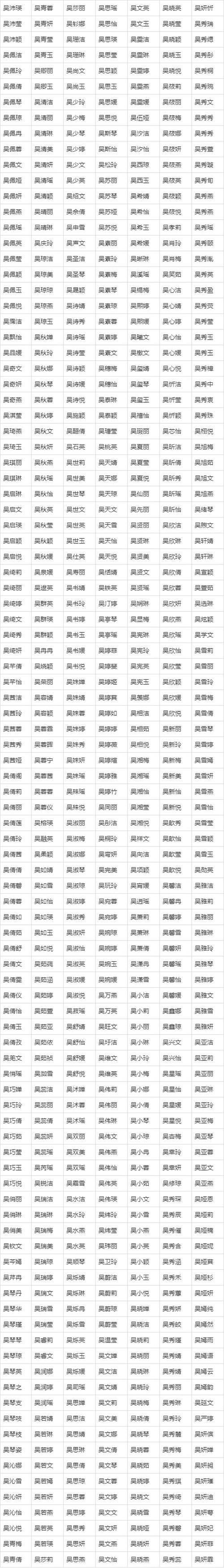 姓吴的女孩取什么名字好听