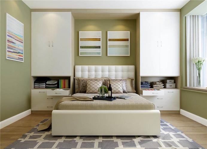2. 两边分开:如果卧室面积足够大,那么也可以将衣柜放置在床铺旁边,这样做既不会堵塞床铺的直线通风,也不会影响居住环境的健康。