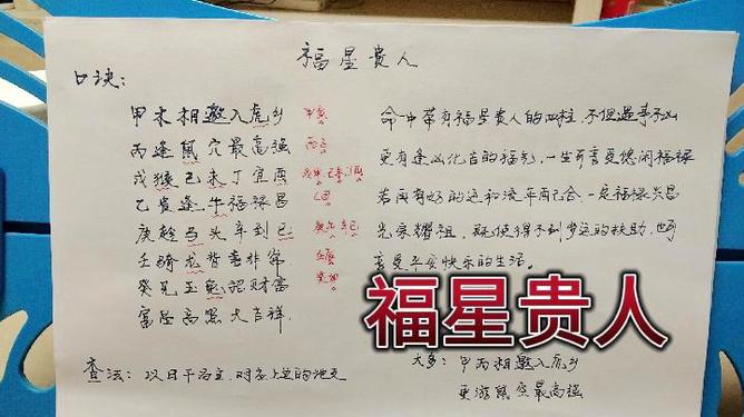 福星贵人是四柱神灵之一。神灵包括吉神和凶煞。起源于古代的神话传说。对人类来说,致祸是可以的。这是《渊海子平》起艮为山卦法,以年干或日干为主。天乙贵人是古代命理学中的一种神灵,是天干地支的特定组合,有其特定的组合和查询方法。文出:天乙贵人,四柱神煞之一。甲戊见牛羊,乙己鼠猴乡,丙丁猪鸡位,盱眙兔蛇藏,庚辛逢虎马,这是贵人方。天乙是天上之神,在紫微垣、长合门外,与太乙并列,事天皇大帝,下游三辰,家在自己丑斗牛之次,出乎自己的不井鬼之舍,执玉衡与天人较量,名叫在乙也。它的神是高贵的,无论走到哪里,一切凶煞都隐然而避。