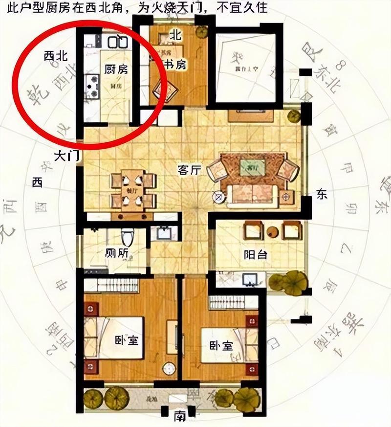 厨房、卫生间或阳台布置,避免水火相克。