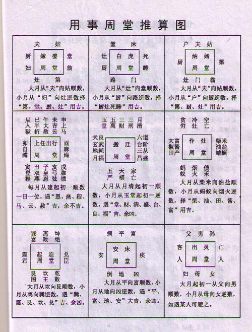 自古以来,中国人就强调合适的时间、合适的地点和合适的人,所以在重要的日子里,尤其是搬进房子的时候。在古代,择日秘法流传下来。接下来我们给大家介绍一下,进入房子的周堂计算吉凶图,选择房子的日子一定要背口诀,希望对准备搬进房子的朋友有所帮助。