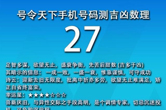 查吉凶三个数字:应用价值用三个数字查吉凶的应用价值是显而易见的,它可以帮助我们分析当天的运气,预测未来的发展趋势。例如,在开展商业活动之前,我们可以用三个数字来判断当天的运气,以决定是否与客户签订合同;我们也可以在考试前用三个数字来判断我们的考试结果,以便采取适当的考试策略。此外,在进入爱情、婚姻、生孩子等重大决定之前,用三个数字查吉凶也可以帮助我们预测未来,给出合理的建议。