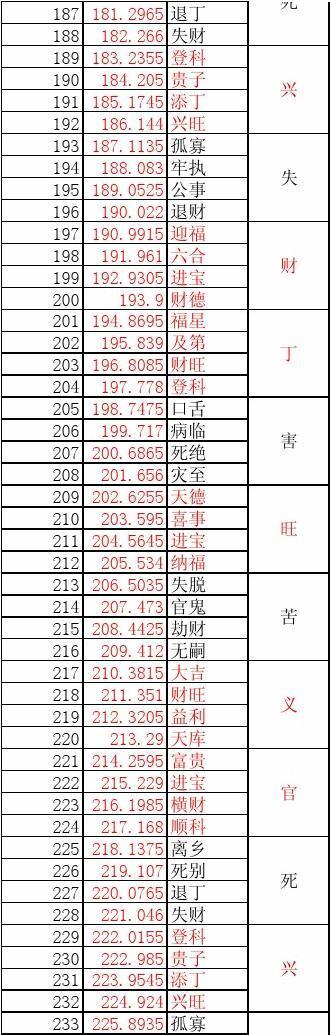 财、失、兴、死、官、义、苦、旺、害、丁、“兴”、“官”、