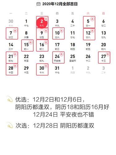 答:12月后,黄道吉日共12天。