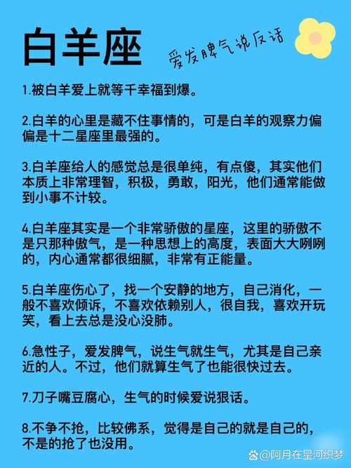 白羊座脾气暴躁,在压力或冲突下容易爆发。他们的愤怒通常是情绪化的和冲动的,这可能会吓到你并破坏你们的关系。