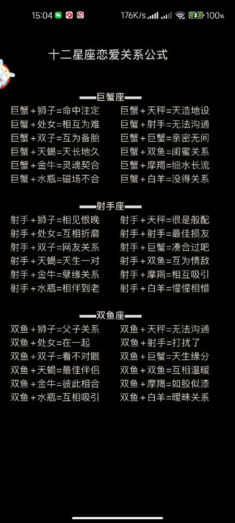 出生星盘:个人的出生星盘提供有关行星位置和相位的详细信息,这可以进一步影响星座配对的动态。