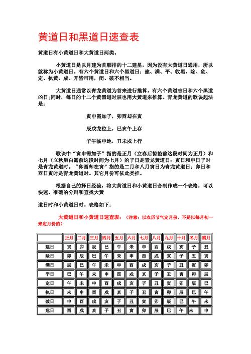 黄道日和黑道日吉凶查法 黄道吉日和黑道凶日的查法如下: