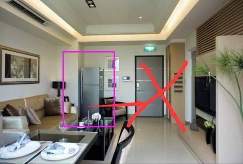 ,冰箱的位置非常重要。冰箱应避免直接对着门。门是家庭气流的入口。冰箱位于门的正对面,容易阻碍正气流入,造成家庭气场紊乱。冰箱不应放在卧室或床头附近,因为冰箱的寒冷会与卧室的温暖气氛发生冲突,影响人们的睡眠质量和健康。