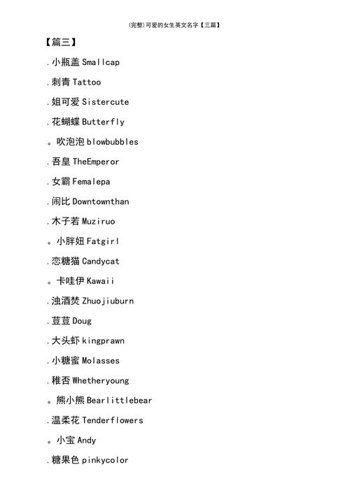 4.爱迪丝(Au骚)——浪漫,温柔的意思,音译为wǔsōn。2、曼妮儿(Gen皙):这个名称来源于《天使与恶魔》中的角色:“她像一位仙人一般聪明伶俐,但是却有点傻白甜”。