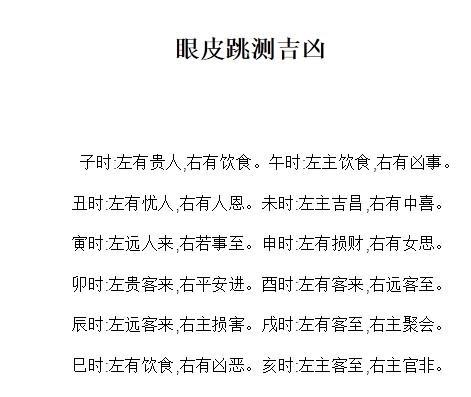 练习右眼跳吉凶为了练习右眼跳的好坏,我们应该在特定的时间内仔细观察我们的右眼。当右眼跳一两次时,这意味着现在可能会发生好事,这是一个抓住它的机会;当右眼跳三五次时,要小心避免可能发生的坏事;当右眼跳七次时,代表危险,最好采取预防措施,避免陷入困境。