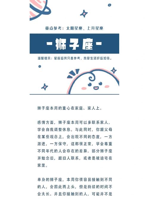 挑战与压力:狮子座在事业发展过程中可能会遇到一些意想不到的挑战和压力,例如与同事的合作关系可能会出现摩擦,或者面临繁重的工作任务。应对这些挑战时,需要保持冷静,合理分配资源和时间,以确保工作的顺利推进。