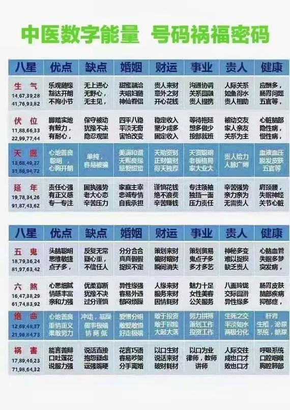 这些数字组合,通过谐音或寓意,被赋予了特殊的吉利含义,广泛应用于商业、生活等各个领域。需要注意的是,数字组合的吉凶并非绝对,还需结合个人的八字命理、风水环境等因素综合判断。